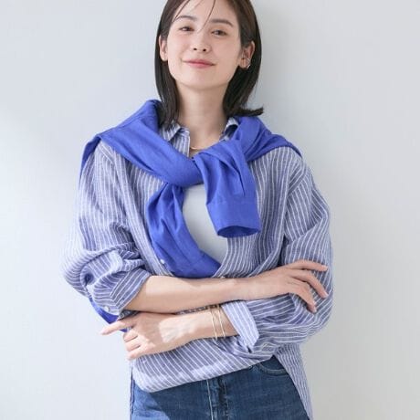 無地とストライプ柄を展開し、清涼感とアレンジ性を両立したデザインで、夏のデイリーユースに最適な一枚です。