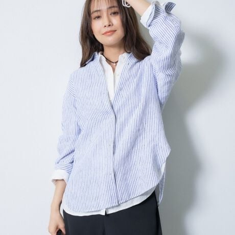 無地とストライプ柄を展開し、清涼感とアレンジ性を両立したデザインで、夏のデイリーユースに最適な一枚です。