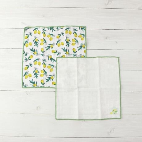 かわいいプリント生地と、隅にワンポイント刺繍のはいった生地の2枚組ディッシュクロスです。