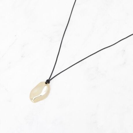 マットなサテンコードと表面に凹凸のある変形メタルパーツを組み合わせたロングネックレスです。