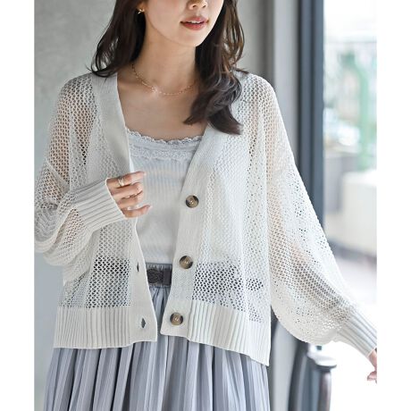 メッシュの透かし編みが清涼感のあるカーディガン。