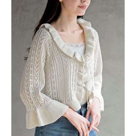 上品でさわやかな透かし編みが清潔感のある装いを演出します。
