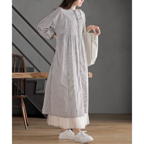 マルイウェブチャネル   /   アール・ピー・エス   /   ワンピースドレス   /   その他ワンピース   /   ストライプパターン切替7分袖シャツワンピース
