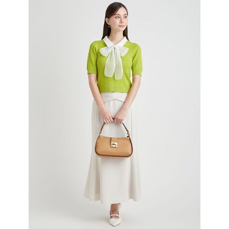 さまざまな着こなしが楽しめるニットプルオーバー。衿とリボンは取り外し可能なので、シーンに合わせてアレンジしていただけます。