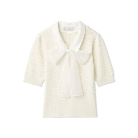 さまざまな着こなしが楽しめるニットプルオーバー。衿とリボンは取り外し可能なので、シーンに合わせてアレンジしていただけます。