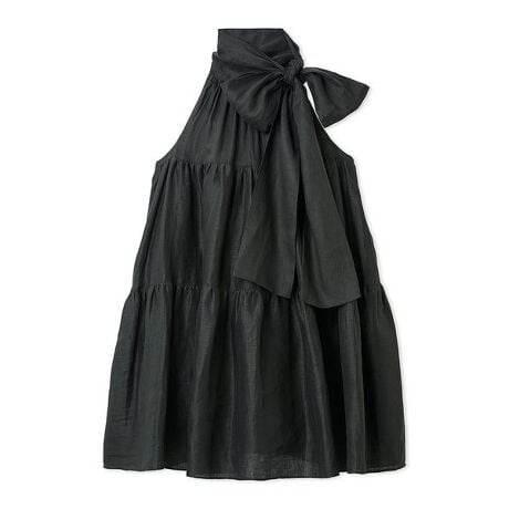 ヨーロッパで栽培されたリネン100%素材でお作りしたワンピース。春から初夏にかけて着心地良い素材です。程よいワッシャー感が雰囲気のある一着になっております。身頃は華やかなギャザーフレアによるテントラインシルエット、大きめなボウタイリボン、アメリカンスリーブによりヘルシーな肌見せもでき、着用すると一層華やかな印象になります。ワンピースとしてはもちろん、パンツとレイヤードするコーディネートもおすすめです。