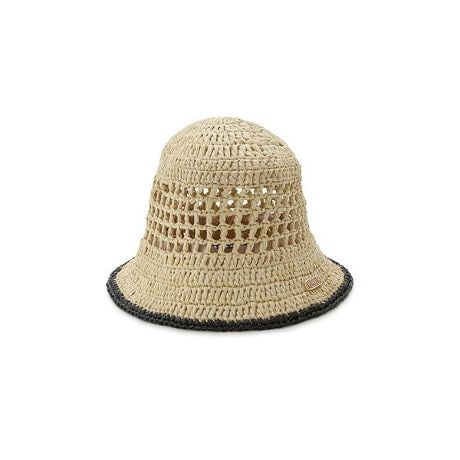 ラフィア風の糸を1つ1つ手編みで仕上げた、夏らしいバケットハット。クラウン部分には透かし編みを施し、涼しげな表情を演出。配色ブリムがさりげないアクセントとなり、サイドのロゴプレートが上品さを添えます。さらに内側でサイズ調整ができるので、フィットさせて快適な着用が可能。※こちらの商品は手編みの為、個体差が発生する場合がございます。