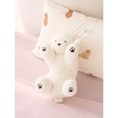 ごろんと寝そべりお腹を見せる、もふもふのトイプードルとポメラニアン、ビションフリーゼたち。人気の犬種たちを、くったりとした感触の心地良いクッションにしました。抱きかかえたときにちょうど良い大きさと重量感にこだわり、それぞれの表情や毛並み、肉球なども可愛くデザイン。ベッドやソファに置いて、一緒に癒しのひとときをお過ごしください。同シリーズの寝具やルームウェアとコーディネートしてお楽しみいただけます。