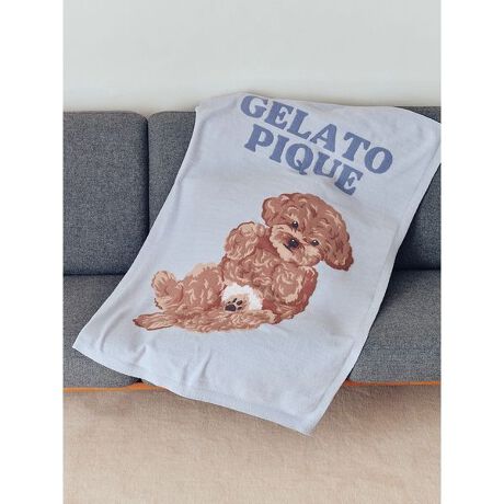 ごろんと寝そべりお腹を見せるワンちゃんを描いたニットシリーズです。なめらかでとろけるような肌触りのニットを使用した、手頃なサイズ感のブランケット。甘えん坊な表情や、ほんのりピンクなお腹の色まで表現した絵柄を大きめにあしらいました。色は全3色で、トイプードル柄のブルー、ポメラニアン柄のクリーム、ビションフリーゼ柄のライトピンクをご用意。同シリーズのルームウェアや雑貨と組み合わせたり、ワンちゃん好きな方へのギフトにもおすすめです。