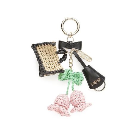 ラフィア風の糸を1つ1つ手編みで仕上げた、夏らしいクラフトチャーム。季節感あふれるモチーフを組み合わせ、フレッシュで遊び心のある印象に。トップの小ぶりなリボンで愛らしさを添え、レザーのキーリングが日常に寄り添う雰囲気を演出。見た目の可愛らしさと、身につける楽しさのギャップが心を躍らせる一品です。