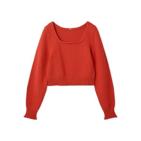 デコルテをきれいに見せてくれる、スクエアネックのニットです。