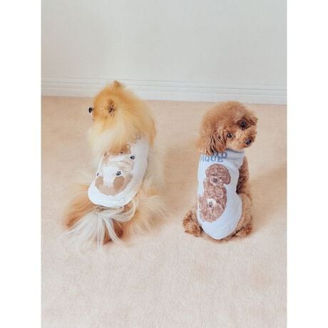 ごろんと寝そべりお腹を見せる、もふもふのトイプードルとポメラニアン、ビションフリーゼたち。人気の犬種をモチーフにした、オーナーさんのルームウェアとリンク・コーディネートが可能なニットプルオーバーです。ふんわり優しい肌触りのニット素材で、寒さが気になる時に重宝します。色はトイプードル柄のブルーとピションフリーゼ柄のライトピンク、ポメラニアン柄のクリームの全3色をご用意しました。