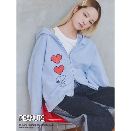 「スヌーピー」とのコラボアイテム。ビッグサイズのパーカーにヴィンテージ風加工をしたスヌーピーをプリントしました。本体のパーカーはオーバーダイ加工にパウダー加工を加え、よりヴィンテージ感を際立たせています。