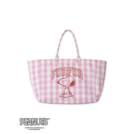 「スヌーピー」とのコラボアイテム。フロントにはスヌーピーのプリントを大胆にあしらったトレンドライクなビッグサイズのトートバッグ。マチを広く取っているため大容量の収納力があり、旅行やレジャーシーンにも便利なトートバッグです。
