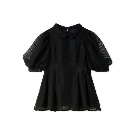 袖の内側をチュールで吊ったバルーン仕様のパフデザインと、ウエストから程よくシェイプされたペプラムシルエットで、一枚で着映えするアイテムです。