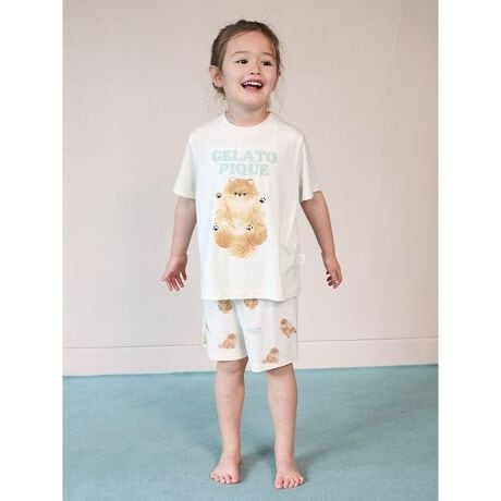 ごろんと寝そべりお腹を見せたりお座りしたり、いろんなポーズのワンちゃんをプリントした、ファミリーでお楽しみいただけるドッグ柄シリーズです。とろみのあるレーヨンを使用した、総柄プリントのKIDSショートパンツ。季節の変わり目にちょうど良い素材感で、汗ばみやすい初夏にかけても快適にはいていただけます。明るい気分を演出する春らしいカラーリングも魅力。右後ろにポケットも付いています。色はポメラニアン柄のクリーム、トイプードル柄のブルーの2色をご用意。同シリーズのTシャツと合わせたり、LADIES’、HOMME、JUNIOR、BABYアイテムとのリンク・コーディネートもお楽しみいただけます。
