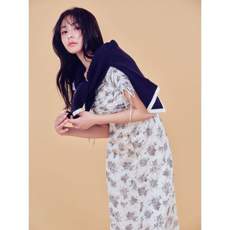 ローズ柄が華やかな印象のワンピース。