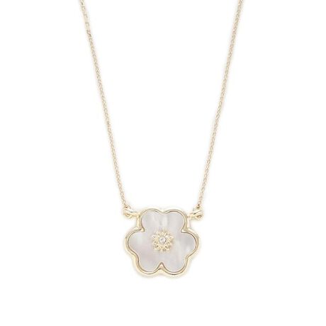 ホワイトマザーオブパール(白蝶貝)を使用した、オリジナルクローバーモチーフのネックレス。クローバーの中央にはラッキースターをワンポイントに。お顔回りに、やわらかく虹色に輝きを灯します。