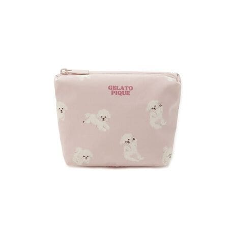 ごろんと寝そべりお腹を見せたり、お座りしたり、いろんなポーズのワンちゃんをプリントしたドッグ柄シリーズのティッシュポーチです。裏側にティッシュケースが付いたタイプ。本体は小さめながらマチがあり内ポケットも付いているので、リップやおしろいなど、お化粧直しのコスメを小さく持ち運ぶのに便利です。カラフルなファスナーの引き手にブランドロゴを入れました。色はポメラニアン柄のクリーム、ビションフリーゼ柄のライトピンク、トイプードル柄のブルーの3色展開。ワンちゃん好きな方へのギフトにもおすすめです。