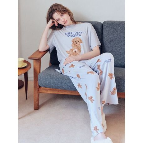 ごろんと寝そべりお腹を見せたりお座りしたり、いろんなポーズのワンちゃんをプリントした、ファミリーでお楽しみいただけるドッグ柄シリーズです。とろみのあるレーヨンを使用した、総柄プリントのロングパンツ。季節の変わり目にちょうど良い素材感で、ベーシックなストレートシルエットです。明るい気分を演出する春らしいカラーリングも魅力。右後ろにポケットも付いています。色はポメラニアン柄のクリーム、ビションフリーゼ柄のライトピンク、トイプードル柄のブルーの3色をご用意。同シリーズのTシャツやジャガードプルオーバーと合わせたり、HOMME、JUNIOR、KIDS、BABYアイテムとのリンク・コーディネートもお楽しみいただけます。
