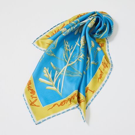 花は花でも単色で描かれたシルクスカーフ。