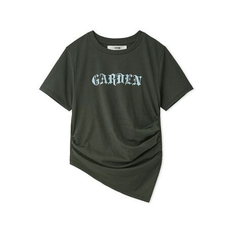 今季FURFURのシーズンテーマである「GARDEN」をフロントにプリントしたTシャツ。華やかな花や果実のようなカラフルな色のボディカラーやプリントがポイントです。表情のあるタックやギャザー、ウエストにフィットするシルエットや変形裾ラインによって、女性らしく着こなせるTシャツです。
