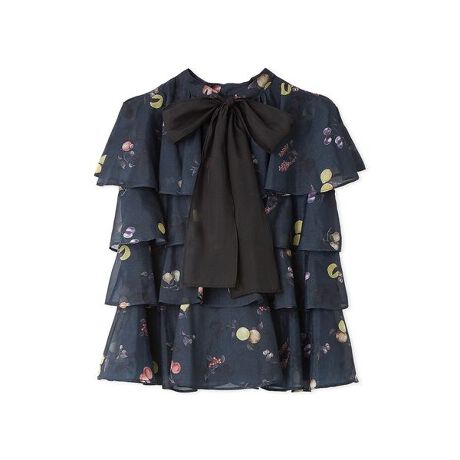 新緑の季節にぴったりな、色とりどりのフルーツ柄がプリントされたブラウス。