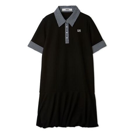 布帛のシャツをレイヤードしたような衿と袖がポイントのミニ丈のポロシャツワンピース。凹凸のある表面感とさらっとした着心地が特徴の鹿の子素材を使用。程よくゆとりのあるサイズ感で着心地の良いシルエットですが、カジュアルになり過ぎないようボリュームのあるバルーンヘムのデザインがポイントになっております。