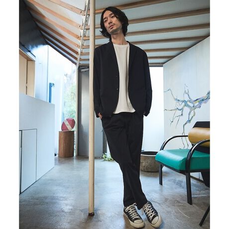裾にかけて美しく絞られるテーパードシルエットがスマートな印象を与えます。