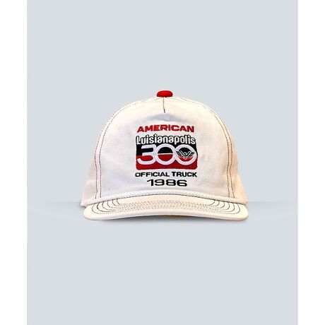 「AMERICAN Indianapolis 300 1986」刺繍をあしらったレーシングモチーフのキャップ。クリーンなホワイトボディに赤いステッチとロープディテールを効かせ、ほど良いヴィンテージ感と存在感を両立。