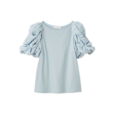 今回は袖にフリルシャーリングが施された生地を使用した、より華やかなデザインに。