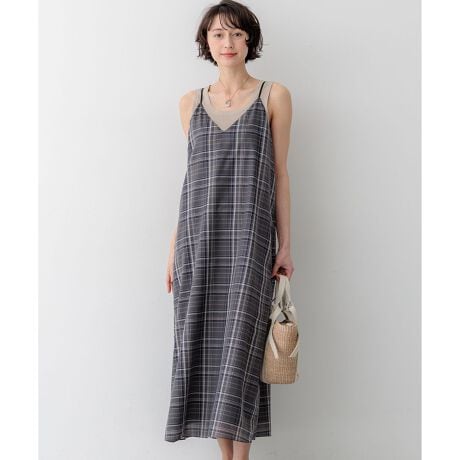 大人のチェック柄キャミソールワンピース