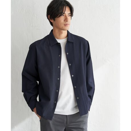 凹凸感と清涼感が特徴のポリエステルサッカー素材を使用した、イージーケア仕様のスナップシャウター。