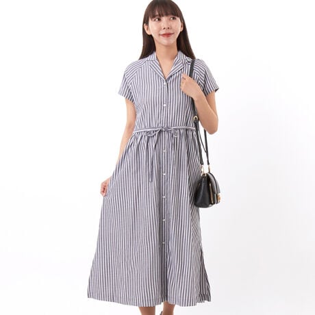 ストライプオープンカラーワンピース