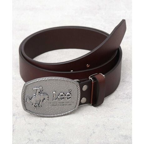アメリカ発の老舗ジーンズメーカー“Lee(リー)”のレザーベルト。ヴィンテージ調の風合い加工を施した、柔らかく、しなやかな牛革を使用しているので普段使いにおすすめ。ヴィンテージのウエスタンシャツに見られた“跳ね馬デザイン”を施した、大ぶりなトップ式バックルがインパクト抜群。約4cmと太めの、しっかりとしたホールド感のあるベルト幅は、ジーンズやチノパンなどカジュアルコーデにぴったり。5段階のサイズ調節が行えるピン穴に加え、中間フリー金具を外してお好みの長さでカットが可能なフリーカット仕様。ベルトのバックルをアクセントにしたスタイリングにおすすめ!