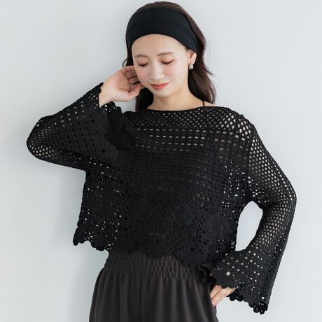 繊細な透け感で魅せる、フレアスリーブクロシェニット