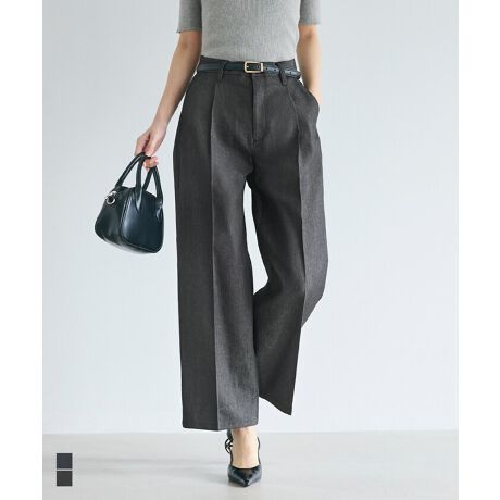 デニム風素材で品よくはける、デニムライクワイドパンツ