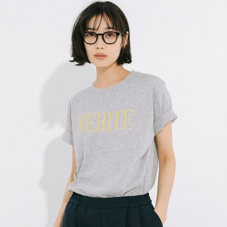 ベーシックなクルーネックで顔まわりすっきり。