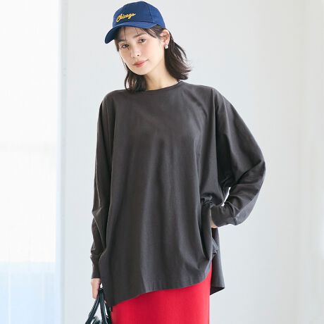 ゆったりシルエットで体型カバーも叶う、ドルマンカットソーチュニック