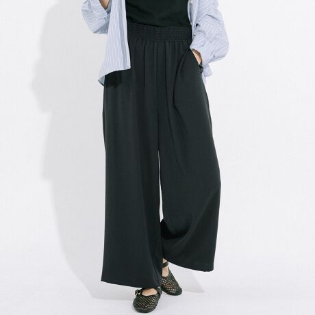 ウエストはゴム仕様のイージータイプで、リラックス感のあるはき心地ながら、きれいな落ち感でシルエットもすっきり。