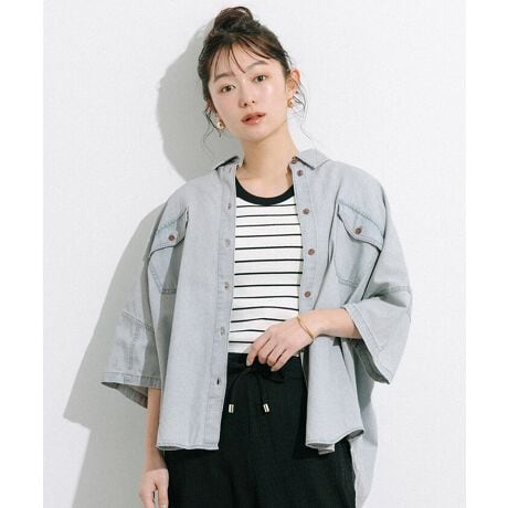 ビッグシルエットが魅力の半袖デニムシャツです。