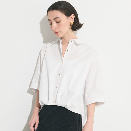 フロントタックがさりげない立体感を生むドルマンシャツ。