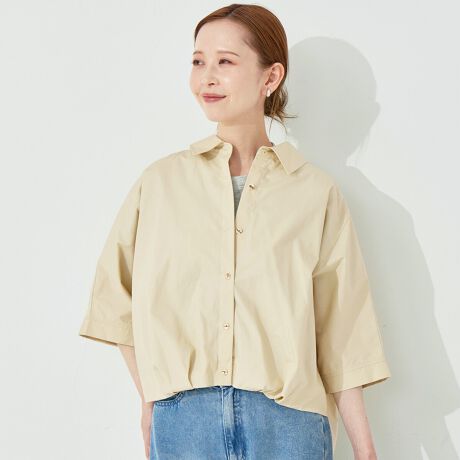 フロントタックがさりげない立体感を生むドルマンシャツ。