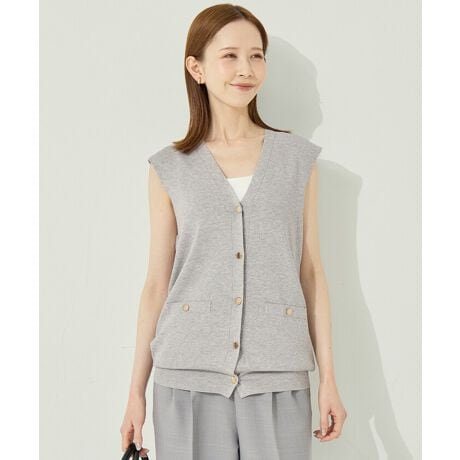 上品なアクセントを添える、金ボタンベストトップス