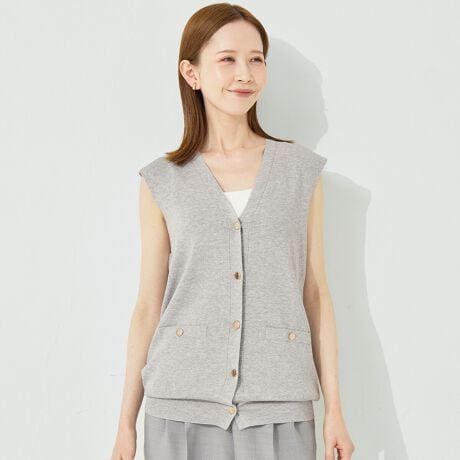 上品なアクセントを添える、金ボタンベストトップス