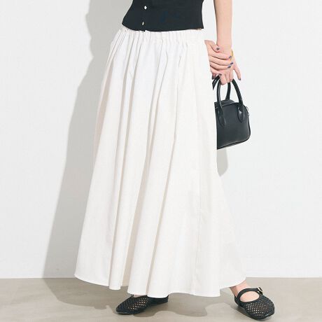 たっぷりとギャザーを入れつつ、広がりすぎない上品なボリューム感が魅力のスカート。