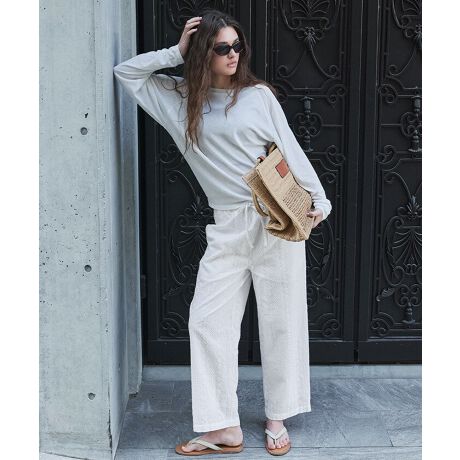 繊細なコットンレースデザインが目を惹くワイドパンツ。