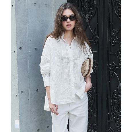 抜け感をまとう、コットンレースのビッグシャツ