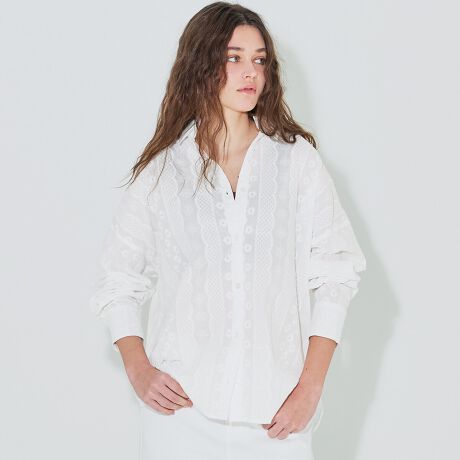 抜け感をまとう、コットンレースのビッグシャツ