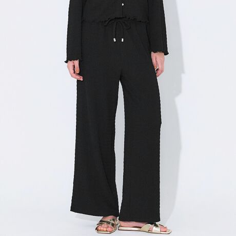 凹凸感のあるシボシャーリング素材が魅力の無地パンツ。